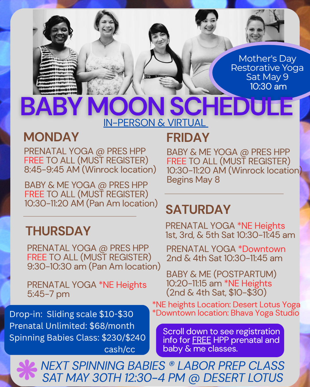 Spinning Babies Birth Prep Class Saturday May 30th 12:30-4 pm @ Desert Lotus Yoga| 5 open spots | $230 cash or $240 Venmo or Square | Learn more.